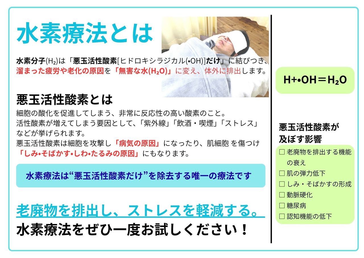 当院では水素療法をお受けいただけます。