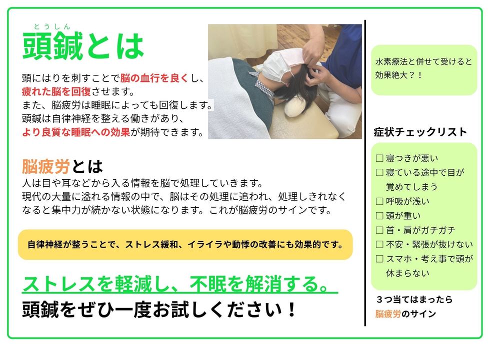 頭鍼をしながら、お休みになる患者様も多くいらっしゃいます。